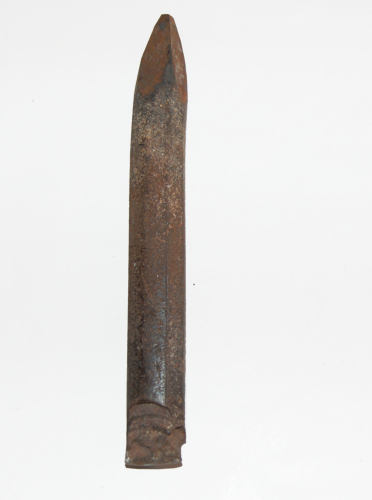 utilizzata assieme al mazzuolo per definire la linea di distacco dei corsi (#cors# stratificazione della pietra) che si intendono estrarre da un banco (fase detta #incolpada#). E utilizzata anche per la spianatura del blocco, per eliminare le sporgenze più grosse, e per i lavori di precisione. La lunghezza della punta è proporzionale alla profondità del solco da realizzare