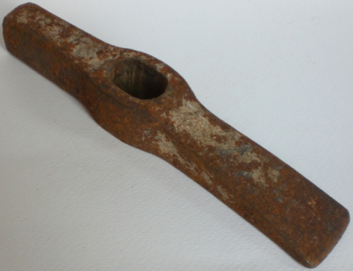 usata sia nellultima fase della levigatura sia nella rifinitura della superficie lapidea, #martelinàr#. Lascia un segno più strisciato e allungato della bocciarda. Questa martellina in particolare era da #scaiàr#, cioè serviva per il lavoro di rettifica delle superfici fatto battendo di spigolo