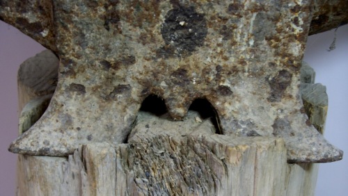 utilizzato come piano per battere il pezzo di metallo forgiato in fase di lavorazione. I fori praticati sul piano di battitura consentivano di inserire stampi o dispositivi particolari per foggiare o per tagliare le barre metalliche