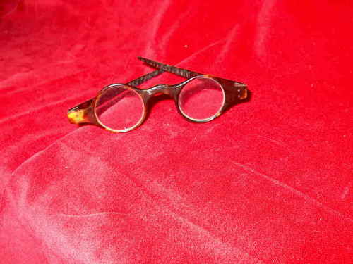 Questi occhiali, in tartaruga, portano le astine a punta per essere conficcate nella parrucca. [Descrizione estratta dal database del Museo dell'Occhiale.]