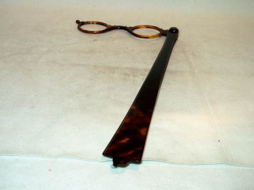 Fassamano in tartaruga a impugnatura lunga. L'occhiale può essere ripiegato e inserito nel centro del manico che normalemente è molto lungo e può essere piatto, rettangolare, triangolare. Questo tipo di fassamano venne impiegato dalla metà del 1800 sino al 1920 circa. [Descrizione estratta dal database del Museo dell'Occhiale.]