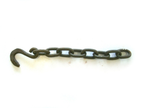 parte di catena per tenere le pentole sopra il focolare (ciadéna de'l foghèr/ cadéna da fuogo) o parte di catena per vari usi con anello e gancio per il traino (ciadéna da stròthe)
