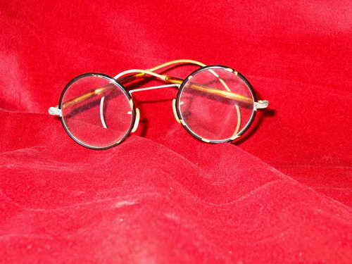 Questo esemplare ha l'anima in metallo ma è completamente rivestito con materiale sintetico. Oculari rotondi ed astine a ricciolo. [Descrizione estratta dal database del Museo dell'Occhiale.]