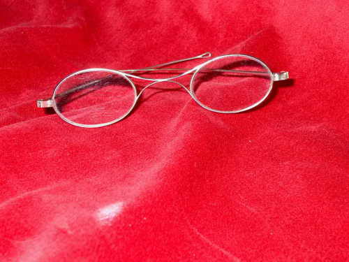 Questo esemplare è in metallo, leggero, fili forme con ponte a "K", lenti ovali ed astine rigidi. [Descrizione estratta dal database del Museo dell'Occhiale.]
