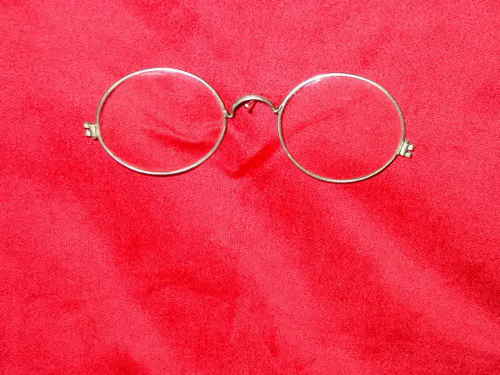 Questo esemplare, privo delle astine, è in metallo e monta lenti bianche, ovali.[Descrizione estratta dal database del Museo dell'Occhiale.]