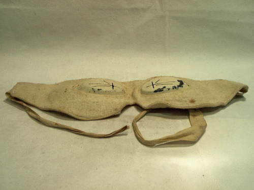 Occhiali antiriflesso da ghiacciaio usati anche come antischegge. Fu distribuito ai soldati italiani tra l'ottobre e il novembre del 1915. Molti esemplari mantennero inizialmente le insegne francesi ed il colore grigio-blu (bleu horizon). In questo caso si tratta di un aiuto visivo con maschera di panno bianco fornita di lacci e inglobante due protezioni a cucchiaio, metalliche, smaltate, con fessure orientate.