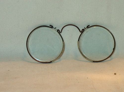 Occhiali ad arco in rame. Sulle lenti è incisa la parola LONDON, che, a quell'epoca, per le produzioni tedesche, contraddistingueva la produzione qualitativamente migliore.