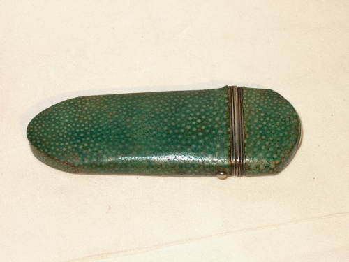 galuchat (produzione artigianale) / raso (tessitura) / argento (produzione artigianale)