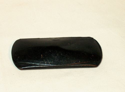L'astuccio, con l'anima in metallo, è ricoperto con pelle colorata in nero. L'interno è foderato in velluto velluto viola, molto rovinato. Nella parte inferiore esterna tracce di impressione: et.is PM de Chanaud / 3tè Ame / 33, Rue Royale Bruxelles, Opticiens 28, Rue St. Paul, Liège.[Descrizione estratta dal database del Museo dell'Occhiale].