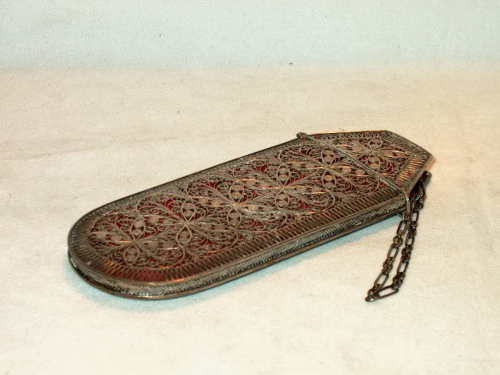 Astuccio per occhiali in filigrana d'argento, a chàtelaine.