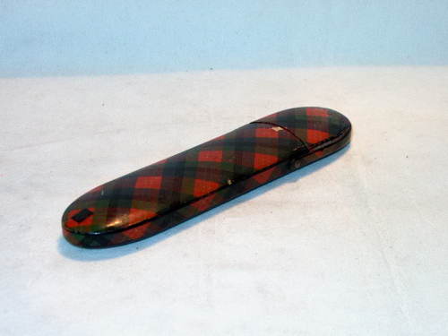 L'astuccio è in cartapesta, di forma ogivale, disegnato a motivi scozzesi. Sul terminale: Princess Louise.