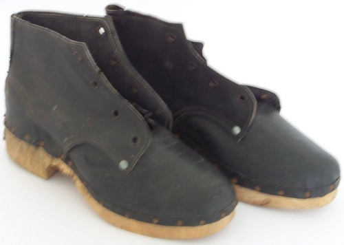 cuoio (taglio/ cucitura/ foratura/ fissaggio con chiodi) / legno (sgrossatura/ rifinitura) / ferro (battitura e sagomatura a caldo)