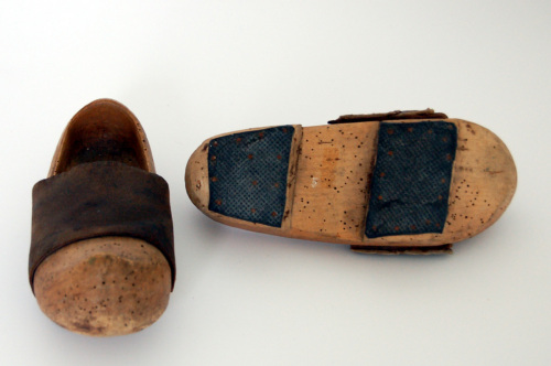 cuoio (taglio/ cucitura/ foratura/ fissaggio con chiodi) / gomma (produzione industriale/fissaggio con chiodi) / legno (sgrossatura/ rifinitura/ chiodatura)