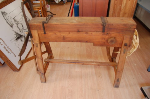 legno (sgrossatura/ rifinitura con strumenti da taglio/ fissaggio a incastro e viti) / ferro (battitura e sagomatura a caldo/ fissaggio con chiodi bulloni e viti)