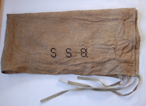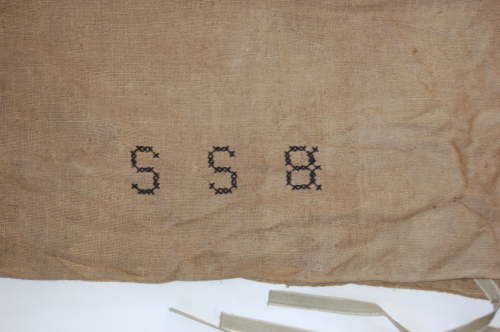 iuta (tessitura) / fettuccia (assemblate con cuciture a mano) / filo di cotone (ricamo a punto croce)