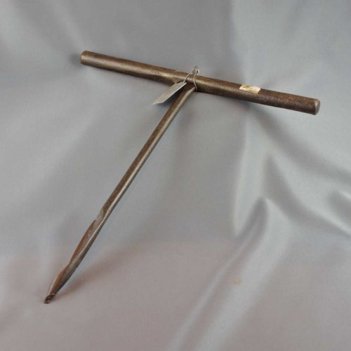 Trivella interamente metallica,con asta a sezione quadrangolare e punta elicoidale. L'impugnatura presenta forma cilindrica. In essa si infila l'asta dello strumento.Notizie storico-critiche