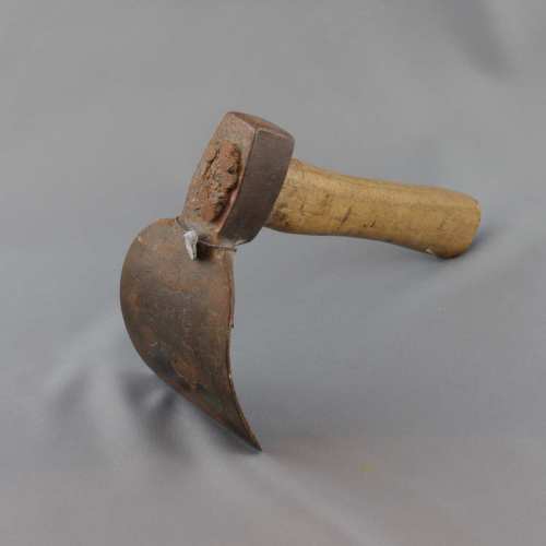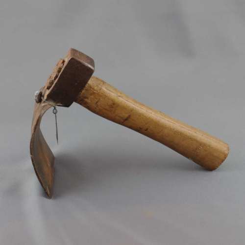 Ascia a zappa a taglio pressochè rettilineo e profilo arcuato; occhio a sezione ovale. Il manico è piuttosto corto.Notizie storico-critiche