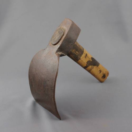 Ascia a zappa a taglio rettilineo e profilo decisamente arcuato; occhio a sezione ovale. Il manico è piuttosto corto.Notizie storico-critiche