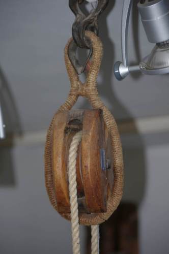 agevolare il traino o il sollevamento di pesi: in particolare, nella gola della puleggia scorreva la scotta #pòsa# con cui si tesava e si fissava verso poppa la #bùgna# della vela. L' altra #bùgna# era manovrata dal caricabbasso #cargabàsso#