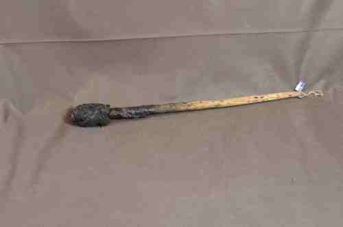 legno (taglio) / filo di ferro (annodatura) / pelle (fissaggio) / lana (fissaggio)