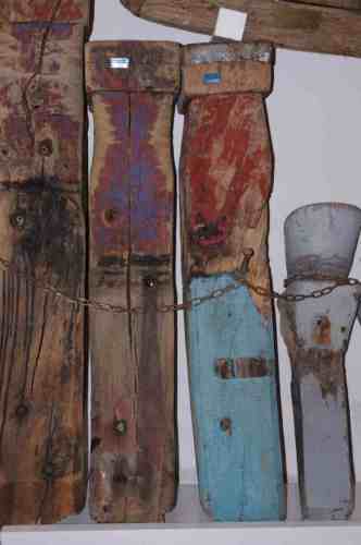 Bitta a forma di parallelepipedo a base pressochè quadrata fino a circa mezza altezza (si tratta del pezzo a sinistra nella foto); nella parte inferiore l'oggetto è tagliato obliquamente per poter essere fissato alla murata. Su tutto il bene ci sono tracce di verniciatura. La testa è protetta da una incappellatura di piombo contro le infiltrazioni d' acqua.Notizie storico-critiche