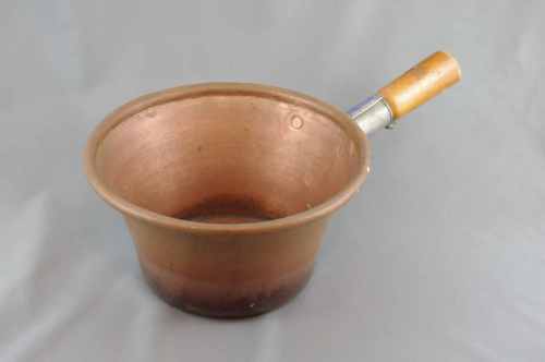 Pentola di forma troncoconica, dotata di un corto manico laterale inserito in un supporto di alluminio.Notizie storico-critiche