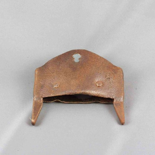 Ferro da remo costituito da una lamina con tre fori per l'inchiodatura che, fissata al remo, ne copriva l'estremità; è dotato di due punte #corni# a sezione quadrangolare.Notizie storico-critiche