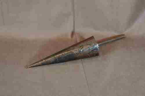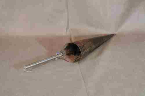 versare la pece calda negli interstizi del fasciame o della coperta - Veniva riempito con uno o due mestoli di pece calda che, attraverso il piccolo foro praticato sul fondo, colava dove necessario. Oltre che negli squeri, simili attrezzi erano utilizzati anche durante la navigazione per rapidi interventi di manutenzione.