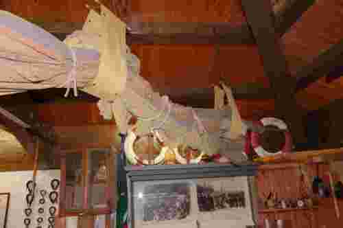 Proveniente da qualche trabaccolo chioggiotto, era stata adattata al pennone di 15 metri dell' albero di prua del burchio "Nuovo Antonio" di Andrea Vettore di Battaglia Terme. Opportunamente distesa, trasformava la pressione dell' aria dovuta al vento in forza motrice in grado di spingere imbarcazione di oltre 200 tonnellate.