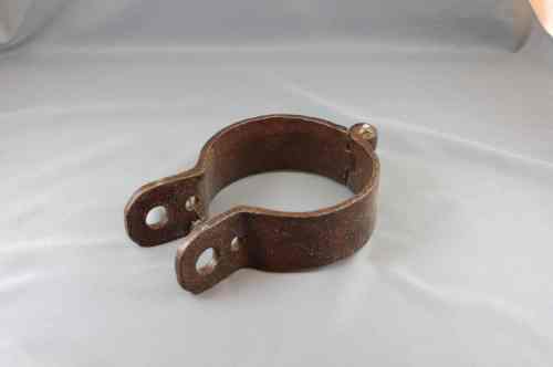 Lama costituita da due semicerchi nastriformi incernierati fra loro; alle estremità libere sono presenti due coppie difori passanti: quelli di minore diametro permettevano la chiusura della #feramenta# attorno all'albero; quelli più grandi ne consentivano l'incernieramento al tronco tramite un perno.