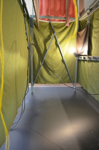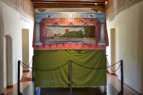Teatrino composto da una ossatura smontabile di assi fissate tramite viti passanti o ad incastro. La struttura è coperta su tutti i lati da dei teli che lasciano libero solo il foro del boccascena.Notizie storico-critiche