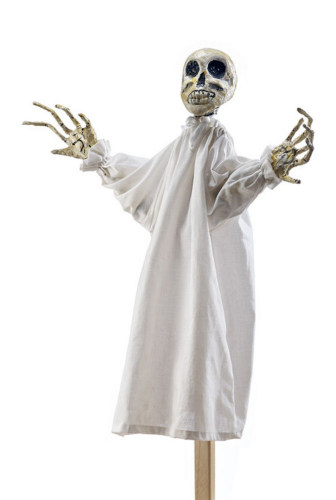Rappresentazione della Morte raffigurata tramite un teschio e delle mani scheletriche che fuoriescono da una veste bianca. Liconografia si discosta da quella tradizionale della Morte vestita di nero e con mantello altrettanto scuro. Si avvicina invece a quella di uno spettro, il cui aspetto orrorifico è accentuato dalle falangi innaturalmente lunghe. Le ossa sono rese sia con ricostruzioni di cartapesta, sia accennate con il colore.Notizie storico-critiche