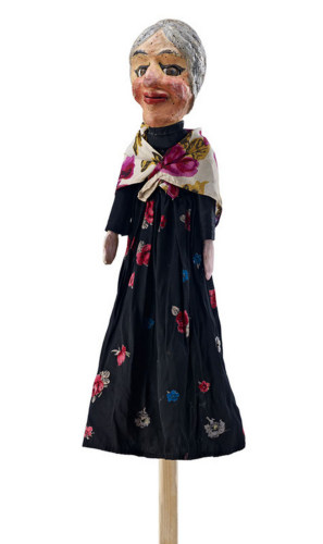 Il burattino era sostenuto in posizione verticale e mosso impugnando lasta. La torsione a destra e sinistra faceva muovere gli occhi orizzontalmente. Con un solo dito il burattinaio poteva anche sollevare e abbassare il braccio destro del burattino tirando un anello presente sullasta e collegato a dei fili. Come burattino a bastone poteva anche essere poggiato (assieme ad altri) su supporti di latta posizionati sullasse del boccascena o in secondo piano, per arricchire di personaggi la scena, mentre Pastrello animava dei burattini a manicotto. Di queste presenze fisse capitava che Pastrello muovesse solo le braccia, tramite il meccanismo dei fili collegati a un anello, e magari più di uno assieme facendo passare uno spago attraverso più occhielli.Notizie storico-critiche