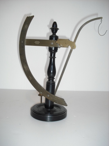 pesare i provini di seta - Una matassina di seta veniva appesa ad un uncino fissato ad una lancetta. Il peso della matassina muove verso il basso l'estremità della lancetta su cui è appeso l'uncino, mentre l'altra estremità si alza e segna su un'asta a forma di semicerchio il titolo, in denari, del filato.