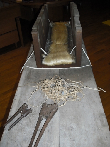 Sopra a questo banco si confezionavano le matasse prima della spedizione. - Base d'appoggio di vari strumenti.