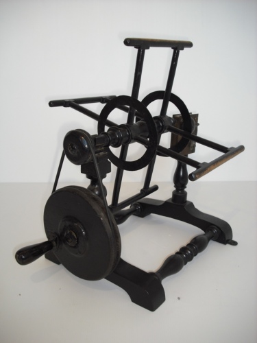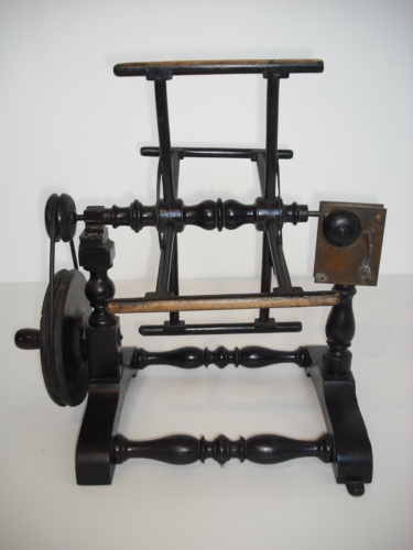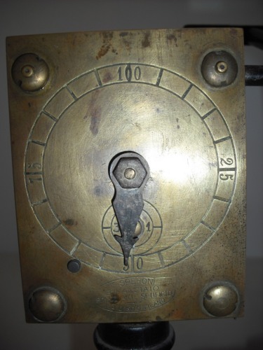 misurare la lunghezza di un provino di seta - Girando la manovella si avvolge il filo di seta nell'aspo vero e proprio e un contagiri o conta metri segna tutto sul quadrante. Un campanellino suona ogni volta che l'indicatore del quadrante passa il numero 100. Un provino deve essere lungo 450 metri, anche se di solito il provino veniva fatto con metà metratura, per comodità.
