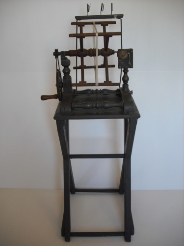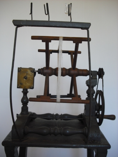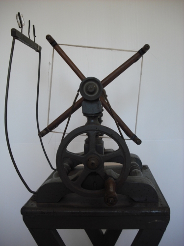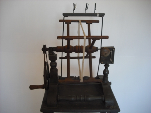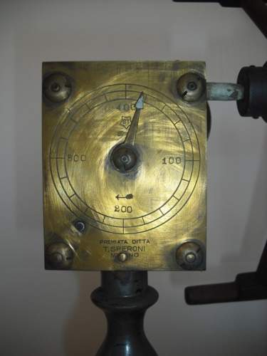 misurare la lunghezza di un provino di seta - Girando la manovella si avvolge il filo di seta nell'aspo vero e proprio e un contagiri o conta metri segna tutto sul quadrante. Un campanellino suona ogni volta che l'indicatore del quadrante passa il numero 100. Un provino deve essere lungo 450 metri, anche se di solito il provino veniva fatto con metà metratura, per comodità.