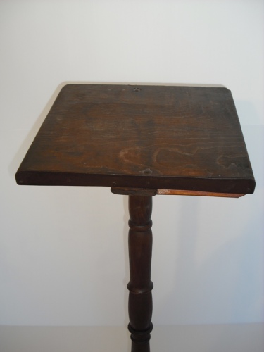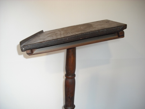 reggeva un libro sul quale venivano annotate le "pesate" - Il titolare (o un incaricato) delle filanda si recava a comperare i bozzoli in Consorzi Agrari o in Cooperative di EssiccatoiBozzoli. I bozzoli venivano messi all'interno di #bisache# che venivano pesate. Il loro peso veniva annotato in una lista assieme alla sigla e al numero stampato sulle sacche. Quando arrivavano in filanda le #bisache# piene di bozzoli venivano portate nel reparto "pesatura". Qui tutte le sacche venivarno pesate di nuovo e veniva controllato che il peso fosse corretto. Nella Filanda Massignan la lista con i pesi e le sigle delle sacche veniva appoggiata su questo leggio.