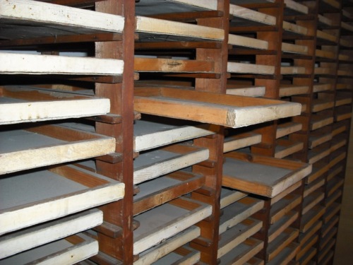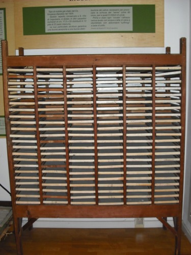 sostenere i cassetti che contenevano le uova di baco da seta / sostenere i cassetti che contenevano le uova di baco da seta
