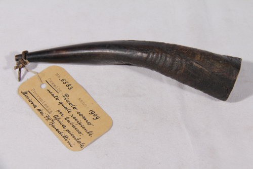 Piccolo corno usato quale recipiente per tabacco. Africa orientale. Missione dei P.P. Benedettini.