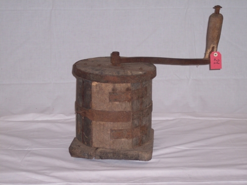 oggetto ligneo di forma cilindrica costituito da doghe affiancate, poggianti su base quadrata lignea, nella parete del cilindro è presente una piccola porticina con chiusura in ferro, il coperchio circolare presenta al centro un perno a cui è agganciato un manico in ferro posto orizzontalmente al cilindro terminante con impugnatura verticale ricoperta di legnoNotizie storico-critiche