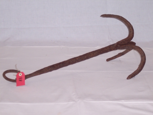 oggetto costituito da una barra di ferro a sezione quadrata (fuso) forata ad un'estremità dove è inserito un anello (cicala); all'altra estremità sono saldati tre bracci ricurvi ad uncino appuntitiNotizie storico-critiche