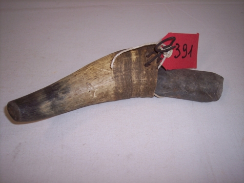 oggetto di forma conica formato da una parte del corno di un bovino privato della punta e scavato all'interno per ospitare la cote e l'acqua per tenerla umida; sul bordo superiore in prossimità dell'apertura sono praticati due fori paralleli per far passare del fil di ferro piegato ad uncino, utile per ancorare il portacote alla cinturaNotizie storico-critiche
