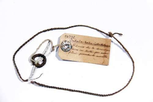Descrizione archivio di provenienza dell'oggetto: nr 16730. "Onkata-Kata-iokukohua!. Feticcio che le donne portano in testa per essere felici prendendo marito.