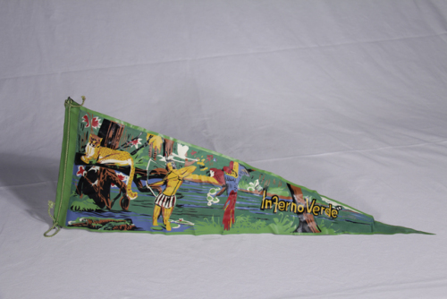 Bandierina realizzata a scopo propagandistico dalle missioni religiose presenti sul luogo. La bandierina porta la scritta "Inferno verde".