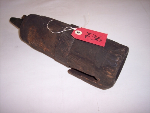 oggetto ligneo a forma cilindrica cavo allinterno con fondo appuntito; anello metallico a circa metà dell'altezza; il bordo superiore tubolare presenta un appendice a gancioNotizie storico-critiche