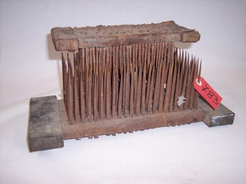 oggetto costituito da unasse lignea di forma rettangolare con le estremità più lunghe ricoperta da una lamina metallica, sulla quale sporgono verticalmente dei chiodi con punte taglienti di diversa lunghezza e spessoreNotizie storico-critiche