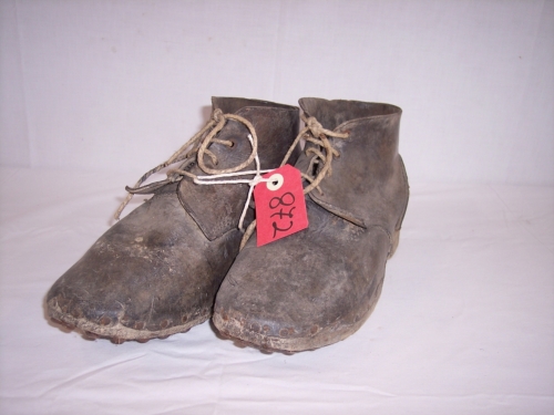 oggetto da indossare ai piedi costituito da una suola in legno naturale con chiodi nella parte inferiore; tomaia di cuoio naturale in tre pezzi, punta stretta e arrotondata; collo alto con linguetta; allacciatura con spago che passa attraverso otto piccoli fori posizionati nel cuoio che copre la parte superiore del piedeNotizie storico-critiche