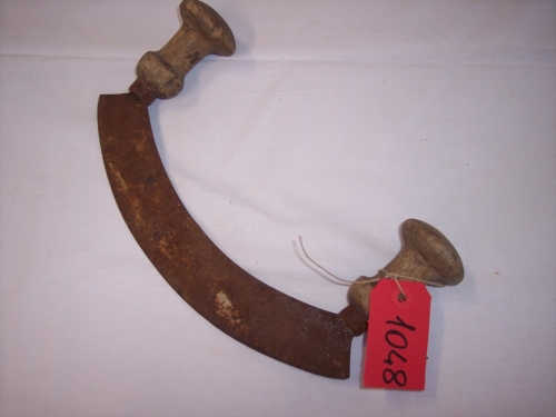utensile costituito da una lama larga curva; alle estremità della quale sono inserite due impugnature con due pomelli in legnoNotizie storico-critiche