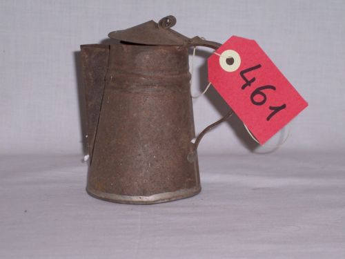 utensile in rame di forma cilindrica leggermente svasata verso il fondo con beccuccio esterno sporgente di forma triangolare molto allungato che parte da quasi sotto lorlo per arrivare quasi fino al fondo; collo abbastanza stretto con coperchio a forma piramidale con una piccola presa costituita da una lamina di rame attorcigliata su sé stessa; ansa a nastro, piatta, ampia saldata da sotto lorlo fino a tre quarti di distanza dal fondoNotizie storico-critiche